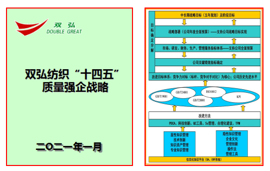 Kalite bir işletmenin hayatıdır. Şirketin bir kıdemli olarak, Yoldaş Ji Yijun, kalite iyileştirmesini her zaman 40 yıldan fazla bir süredir şirketin en önemli önceliği olarak görmüştür. Gemisi ve etkisi altında, Double Great Company, 2007'den beri Performans Mükemmelliği Yönetim Modelini tanıttı ve uyguladı ve "her iplik güneşin değeri", "inovasyon, kalite, bütünlük ve uyum" ve "yaşamın uzun ömürlülüğü, Evergreen Double Great" vizyonunun misyonunu oluşturdu. Rafine Kalite Yönetimi Sloganı "Kalite ne kadar küçük olursa olsun, çok önemli, kalite ne kadar zor olursa olsun, iyi yapılması gereken ve iyi çalışanlara dikkat etmeyen çalışanlar şirketin kalite aforizmalarına dahil edilmiştir ve kalite iş sloganı" kalite, pazarda bir sektörle bilinen bir kalite kavramı haline gelmiştir ve tüm sektöre ait bir kalite kavramı haline gelmiştir.