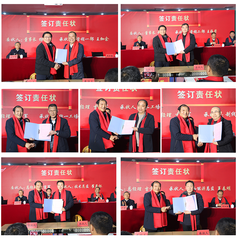 Toplantıda, pazarlama departmanı başkanı Başkan Yang Yang ile bir pazarlama hedefi sorumluluk mektubu ve üretim atölyesi, teknoloji, ekipman ve diğer departmanların başkanları sırasıyla üretim görevini imzaladı ve anahtar çalışma, genel müdür Ji Yijun ile sorumluluk mektuplarını hedef aldı.