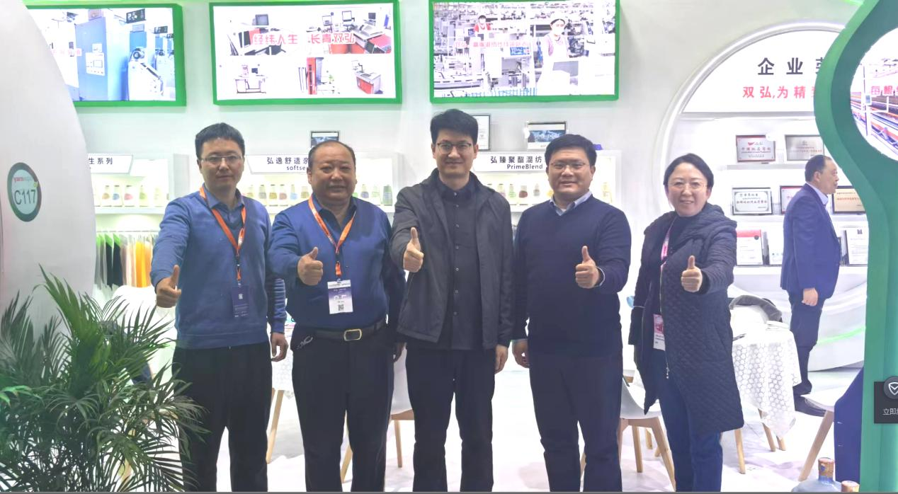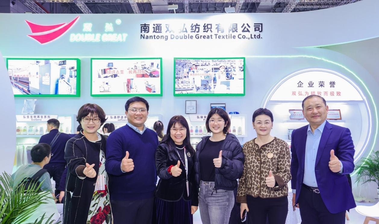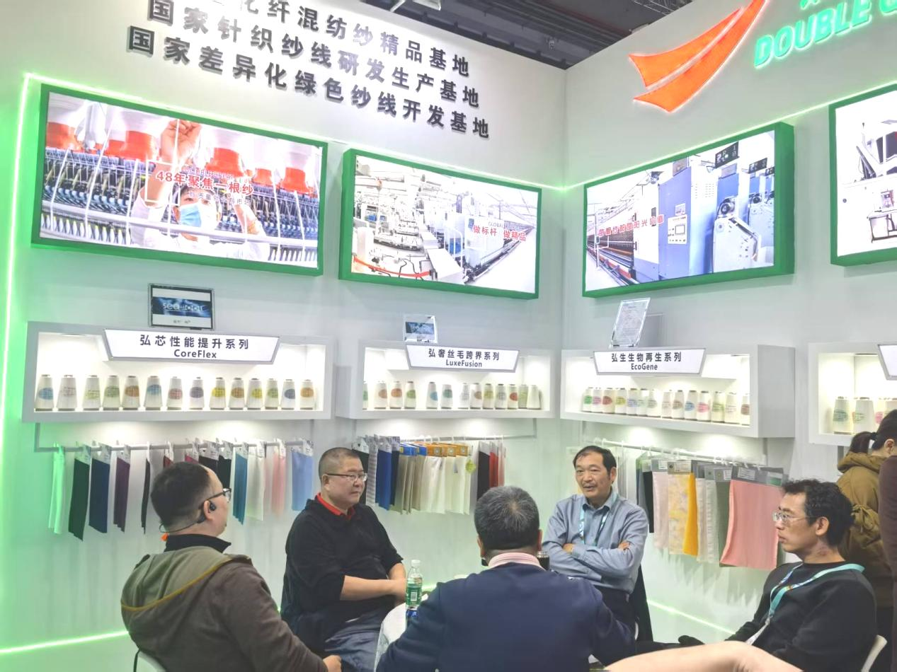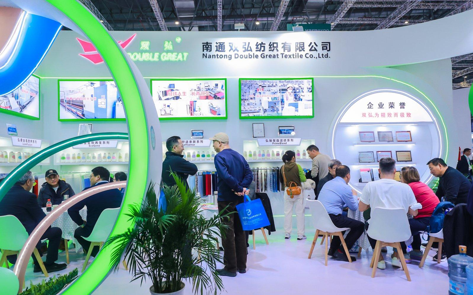 Nantong Double Great Textile Co., Ltd., farklı selüloz fiber serisi, biyo tabanlı seriler, geri dönüştürülmüş üst düzey polyester serileri, farklılaşmış çekirdek seri serileri, üst düzey doğal ışık hong serileri ve yeni geliştirilmiş yün saf fragning serileri, biyoaktik asit asit plası ve diğer yüksek uçlu seri ürünler de dahil olmak üzere bir dizi sergi getirdi.