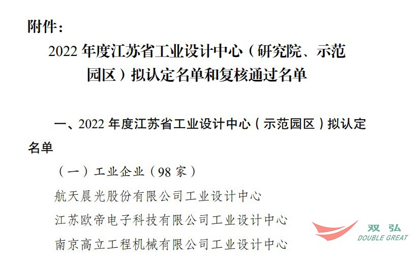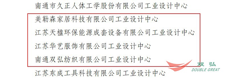 Son zamanlarda- Jiangsu İl Sanayi ve Bilgi Teknolojisi Bölümü'nden Nantong Double Great Textile Co.- Ltd. 2022'de Jiangsu Endüstriyel Tasarım Merkezi Başlığı .
