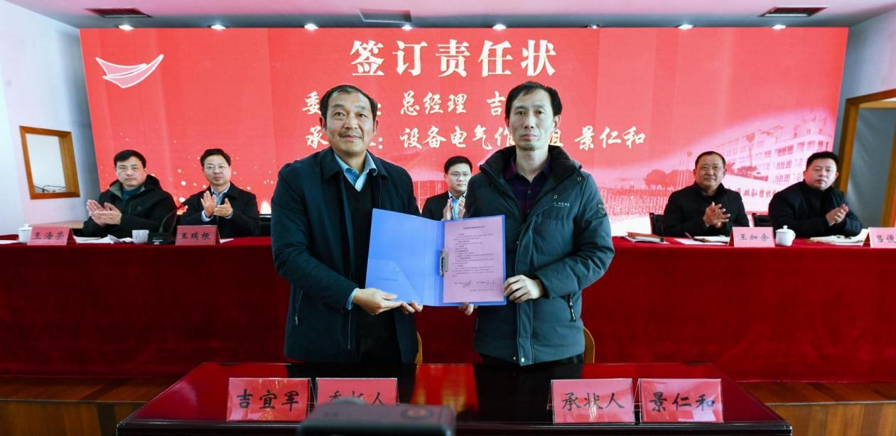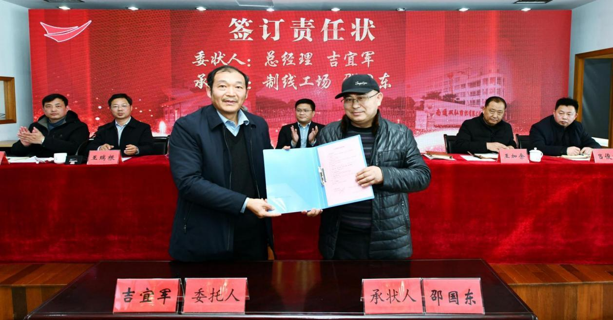 Bir hedef ve bir zihinle, reform stratejilerini uygulamaya çalışıyoruz. Siyasi liderliği vurguluyoruz ve bir çalışan ekibi kuruyoruz. Sorumluluk konusunu vurguluyoruz ve canlılığı teşvik ediyoruz. Bir fabrikayı birden fazla sistemle vurguluyoruz ve birleşme ve devralmaları teşvik ediyoruz. İş verimliliğini, şirket tarafından merkezi yönetim ve departmanlar tarafından hiyerarşik sorumluluğu vurguluyoruz. Birlik güçtür ve mücadele geleceği yaratır. Yoldaş Ji Yijun, tüm çift büyük insanların kendinden emin, umutlu, öncü, G ve girişimci olacağını ve binlerce mil seyahat edebilen, zorluklarda inisiyatif alabilen, sıkıntıdaki engellere tırmanan ve uzun ömürlü bir çift büyük inşa etmek ve daha iyi bir gelecek yaratmak için birlikte sıkı çalışacağını umuyor. Pazarlama Departmanı Başkanı Başkan Yang Yang ile bir pazarlama hedefi sorumluluk mektubu imzaladı ve üretim atölyesi başkanı ve ELEKTRİK BAKIMI Ekibi, Atölye Hedef Sorumluluk Mektubu ve Genel Müdür Ji Yiju, N ile ELEKTRİM ELEKTRİK SAĞLIK Sorumluluk Mektubunu imzaladı.